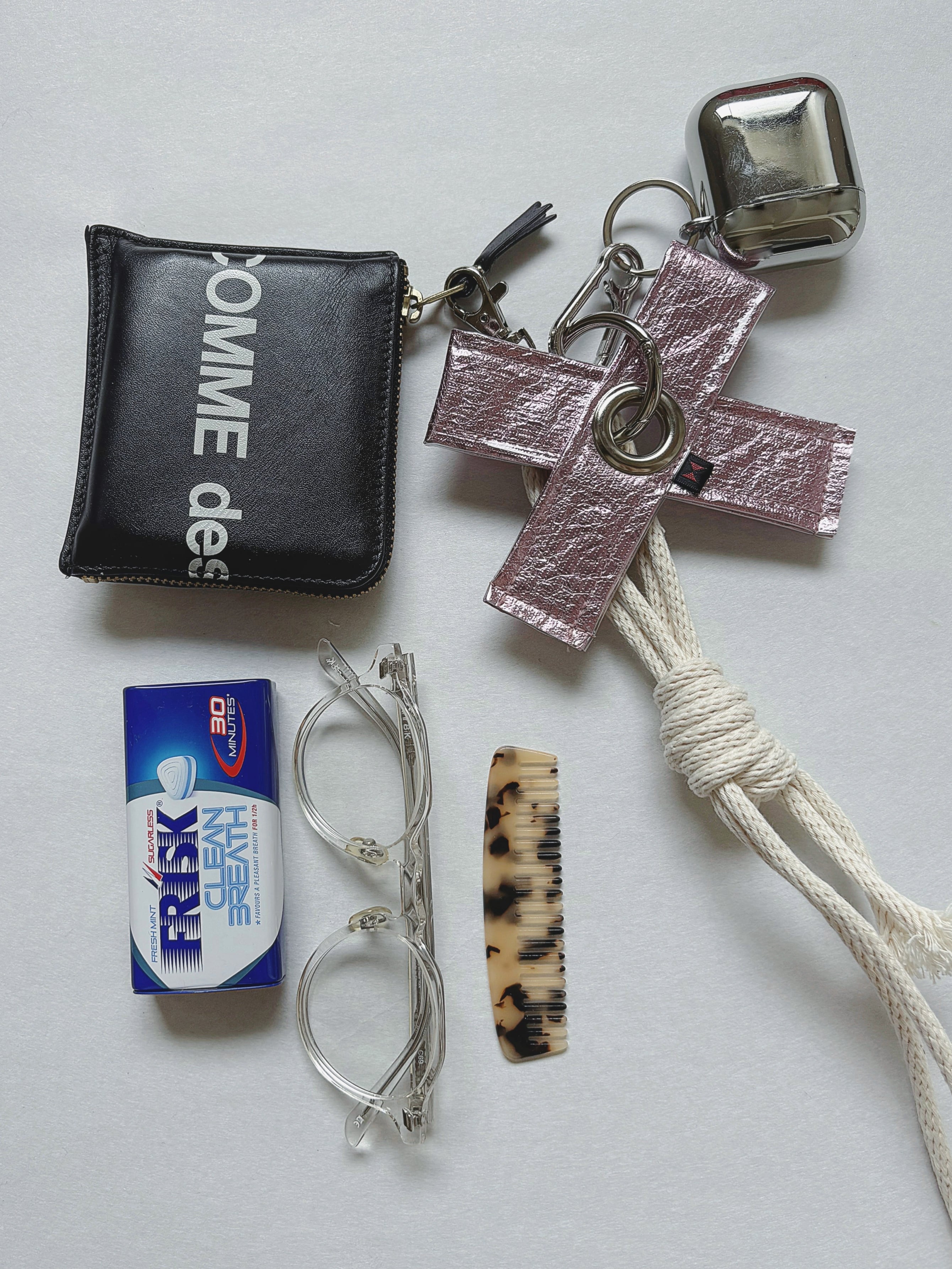 紙のようなシワ感のあるメタリックとPVCを重ね、タフに。
