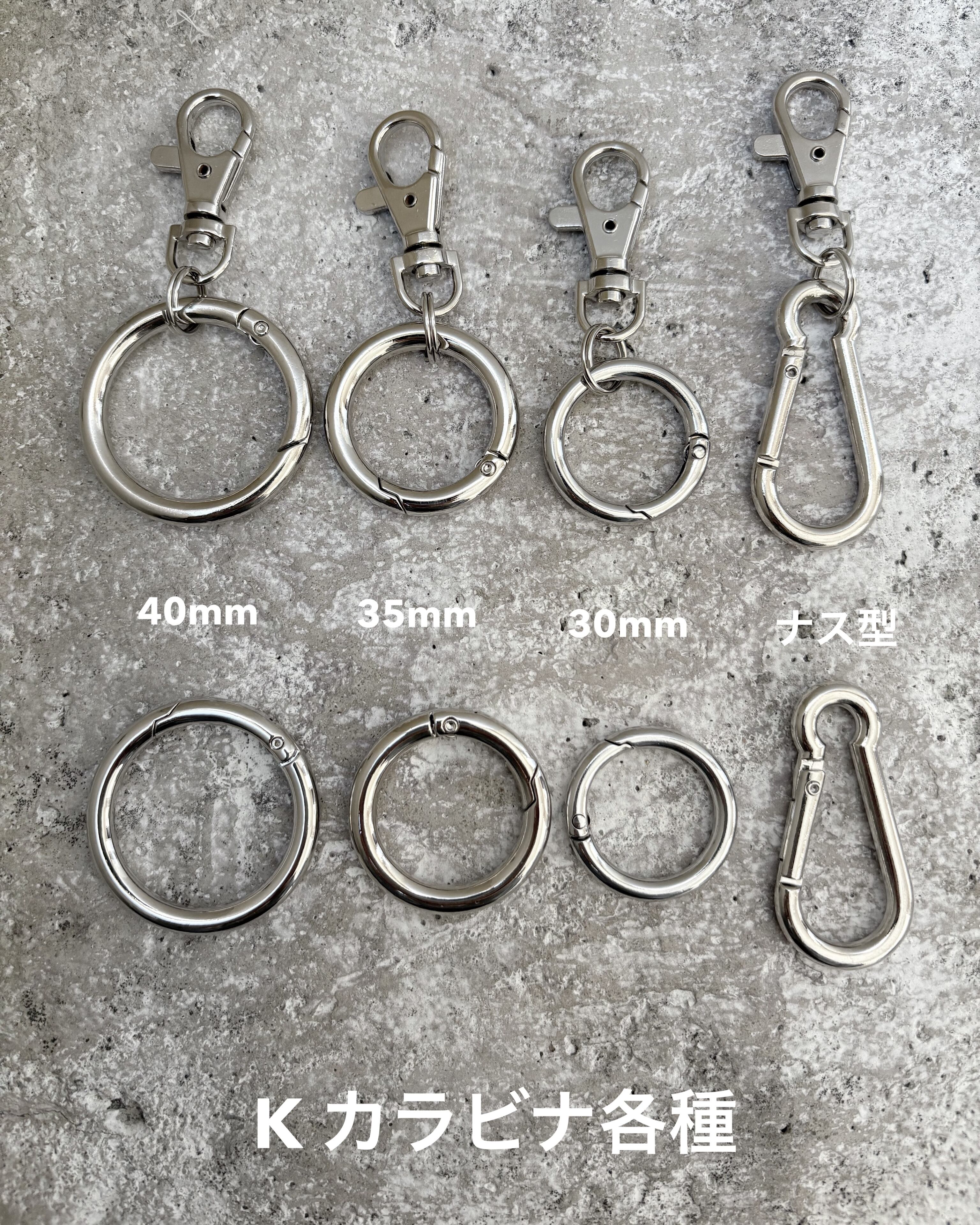 カラビナを合わせる場合、穴に通すには40mm丸型カラビナ対応しています。