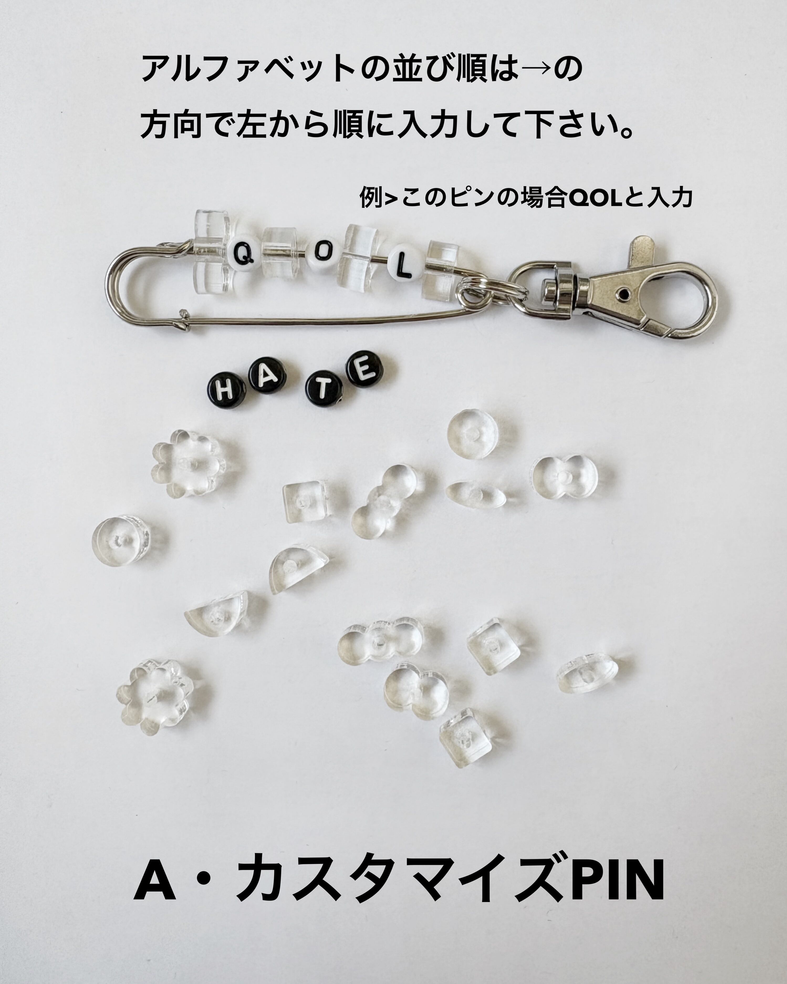 ●パーツを通した後、ピンの開閉部分を接着固定しており、ピンとしては使用できません。