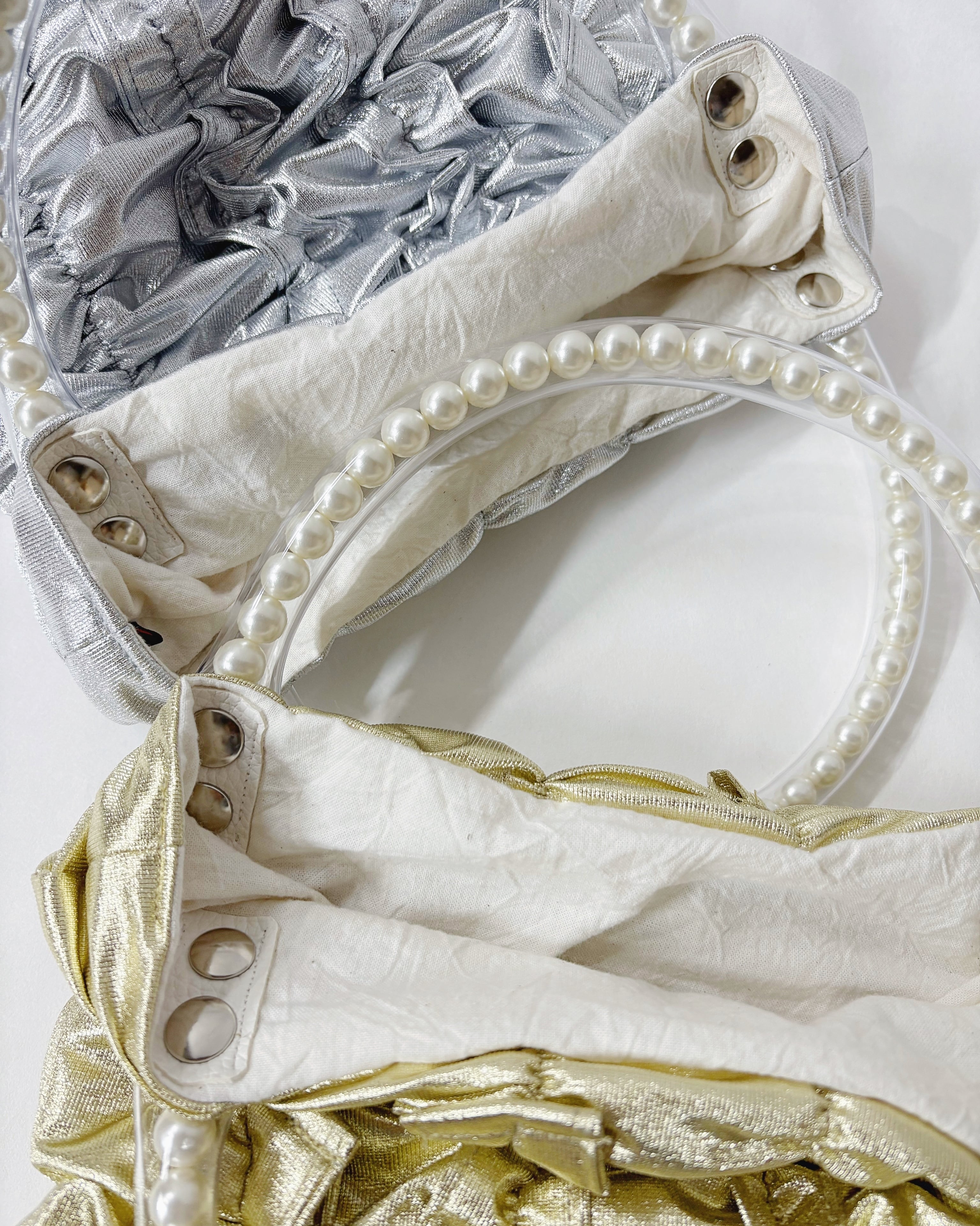 ▲持ち手の先からパールを通した紐が出ていますが、こちらはデザインとして