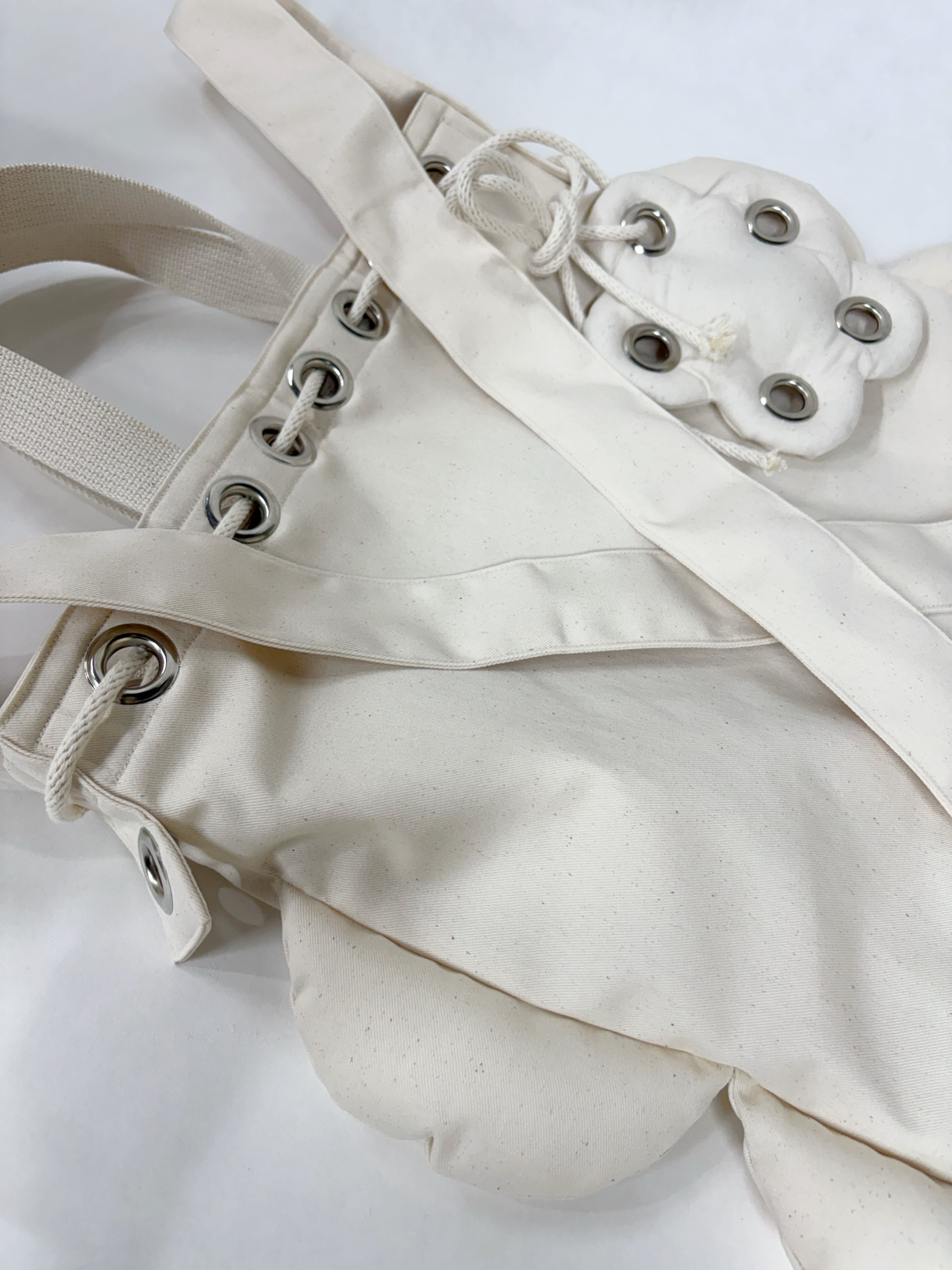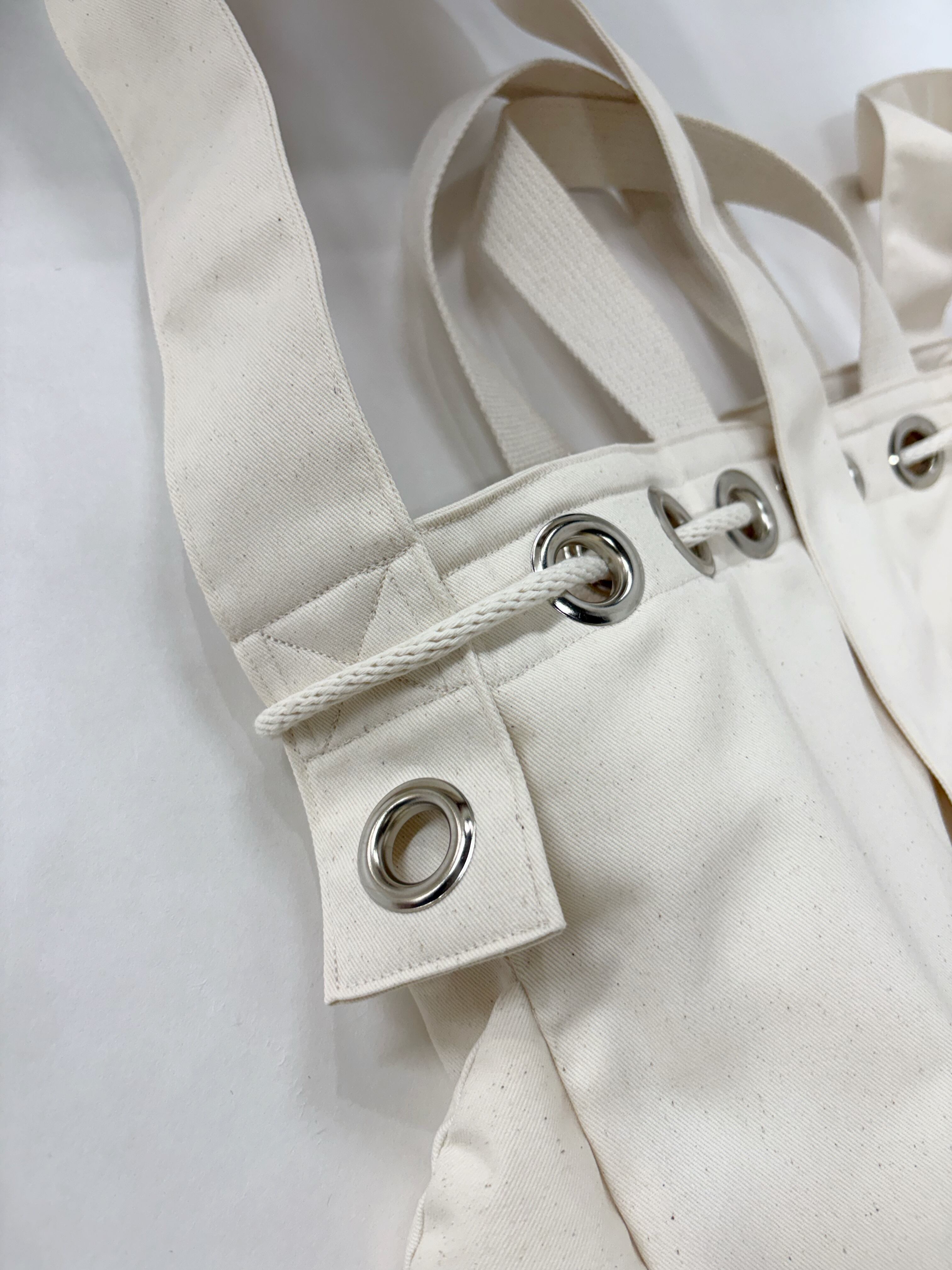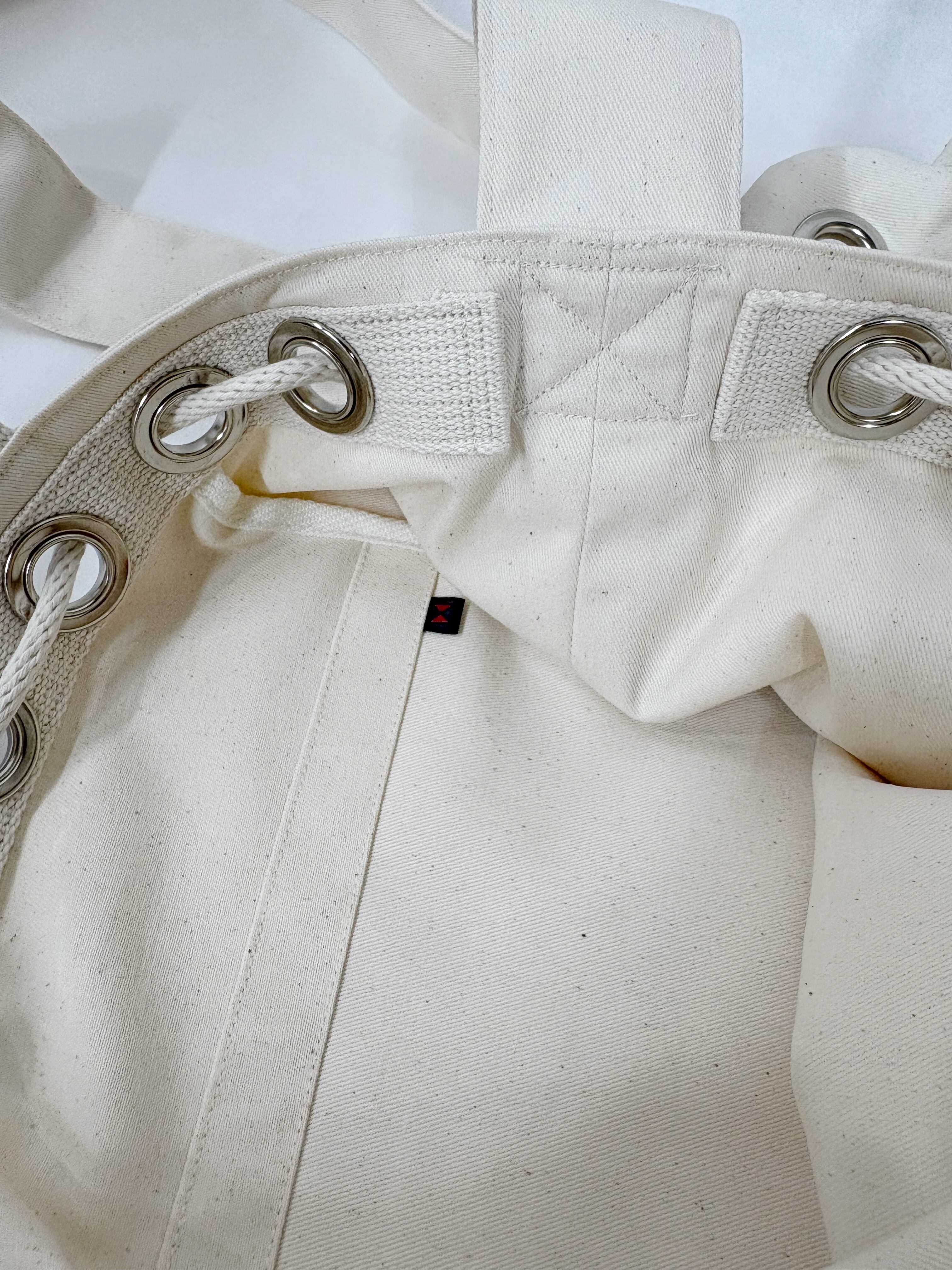 巾着仕様のために、穴に通しているしている紐は綿100%です。