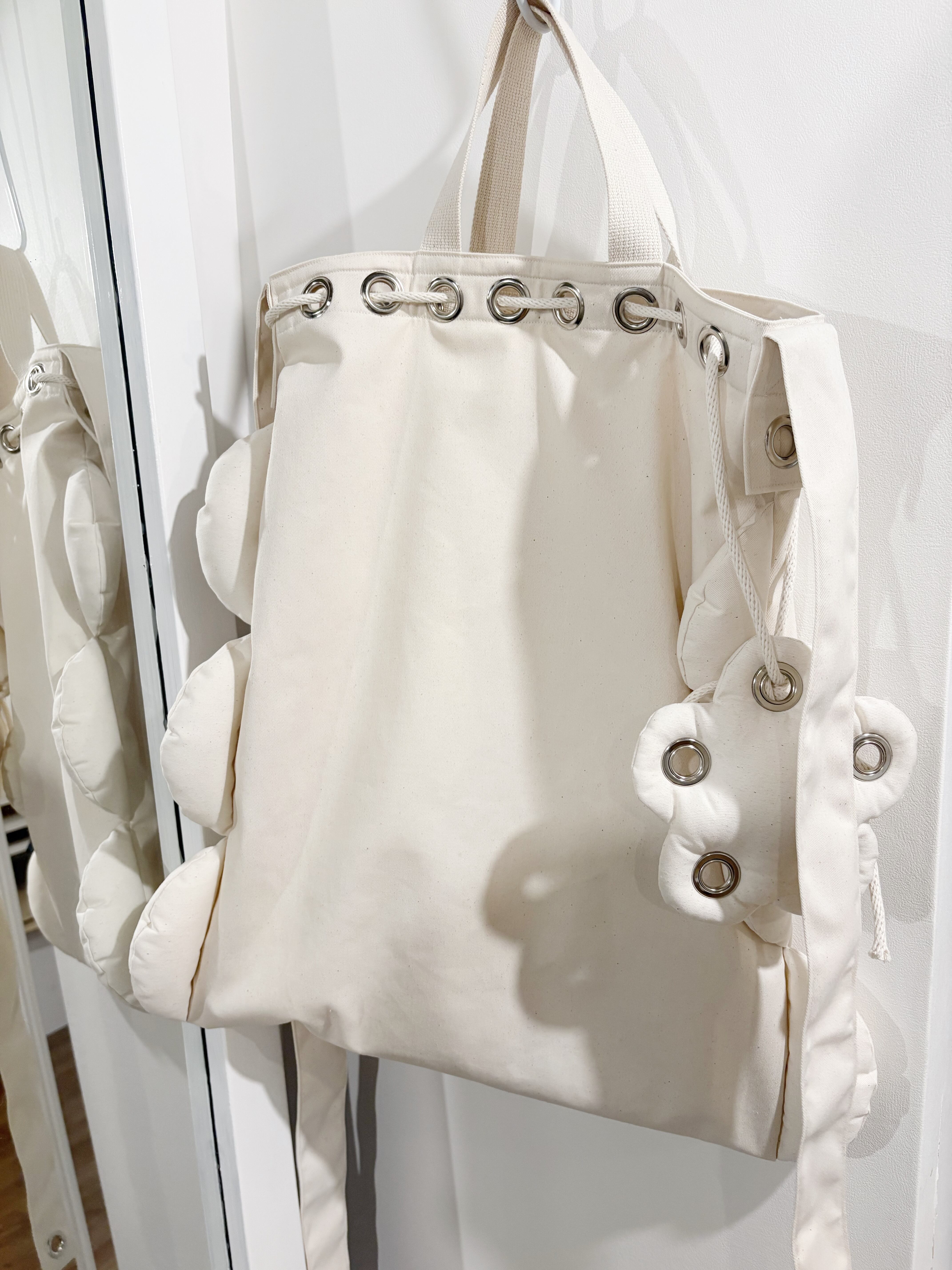 バッグの口だけでなく紐の先やサイドにも穴があり