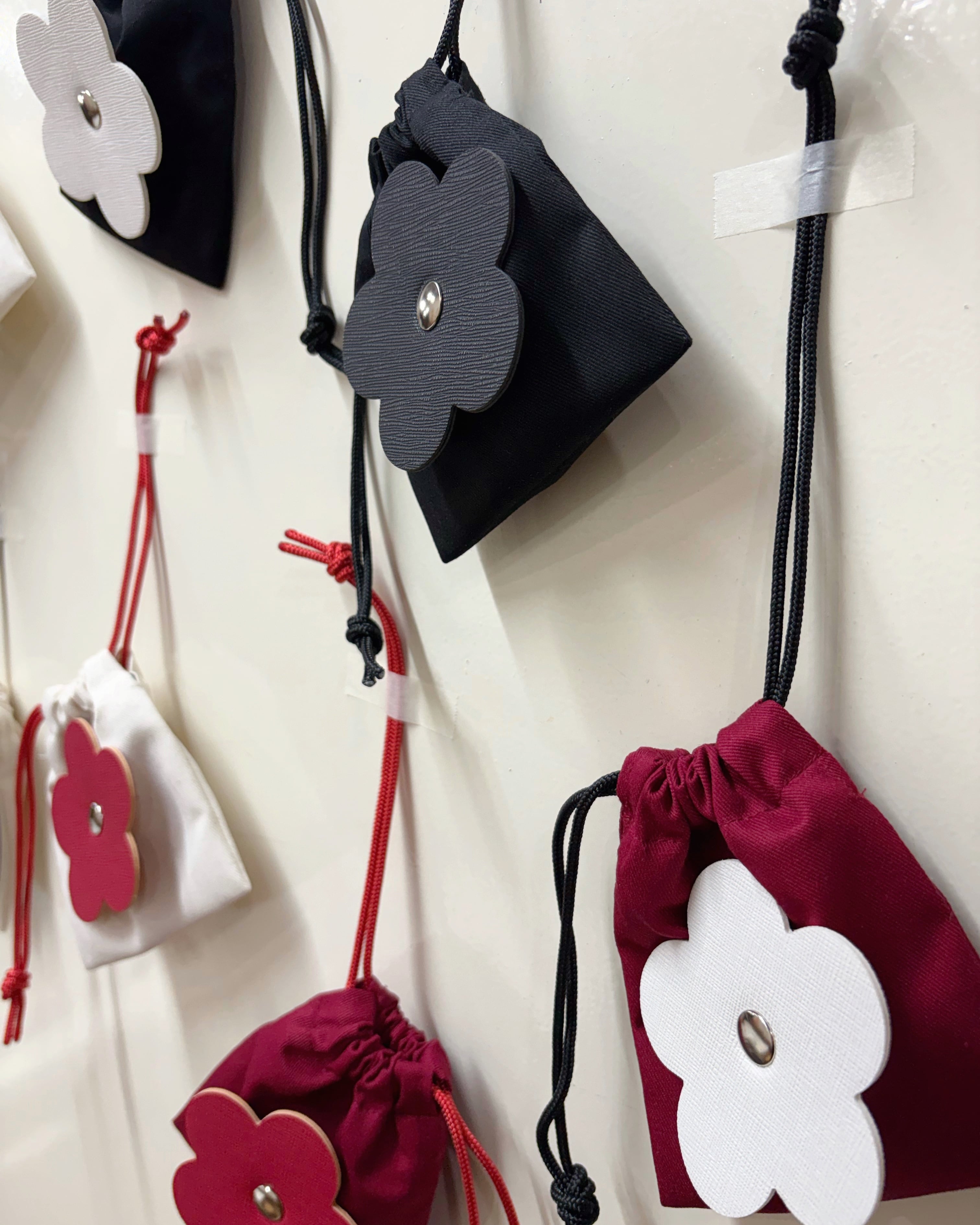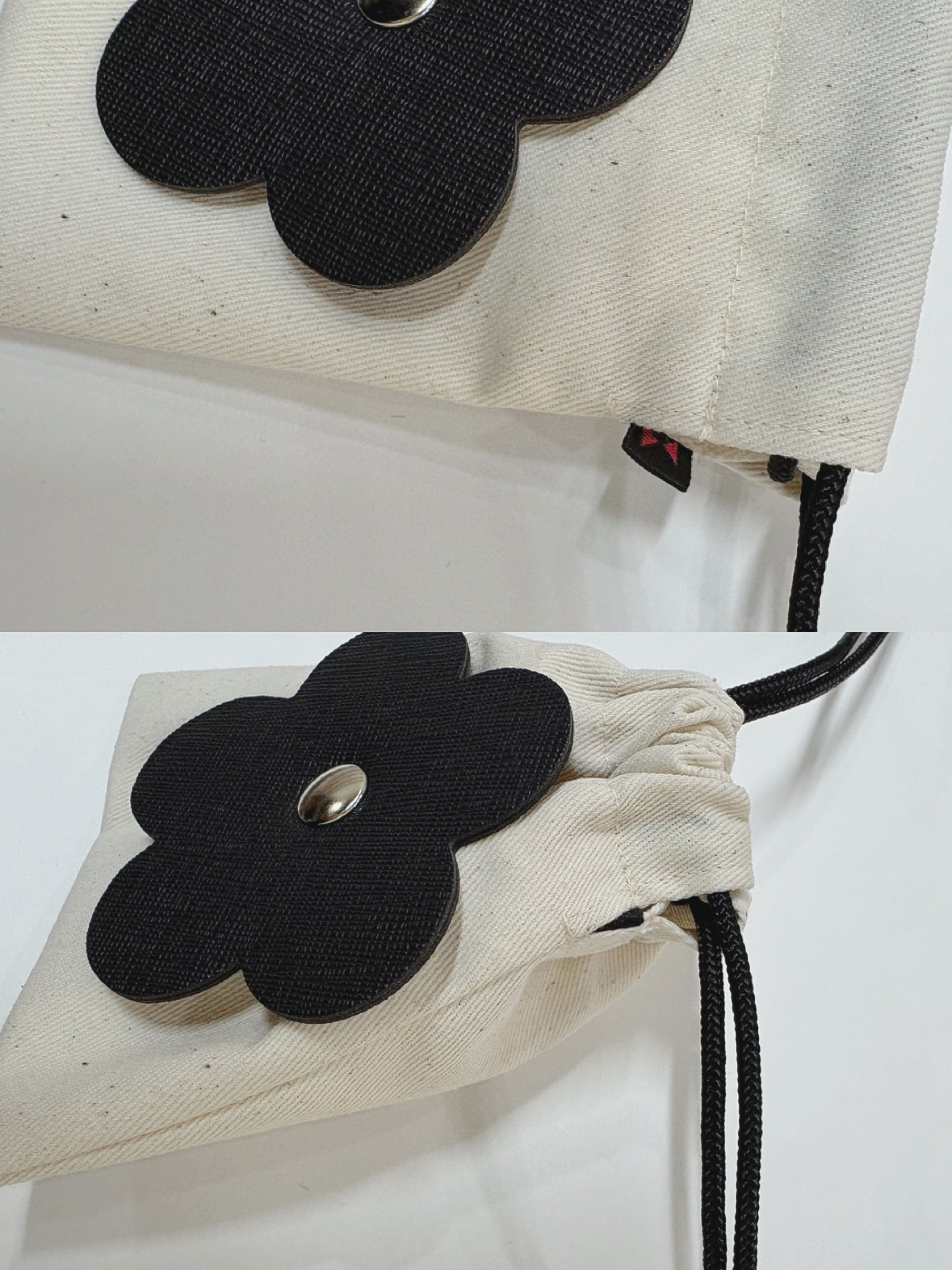 手のひらサイズに収まるミニサイズの巾着に1つのお花