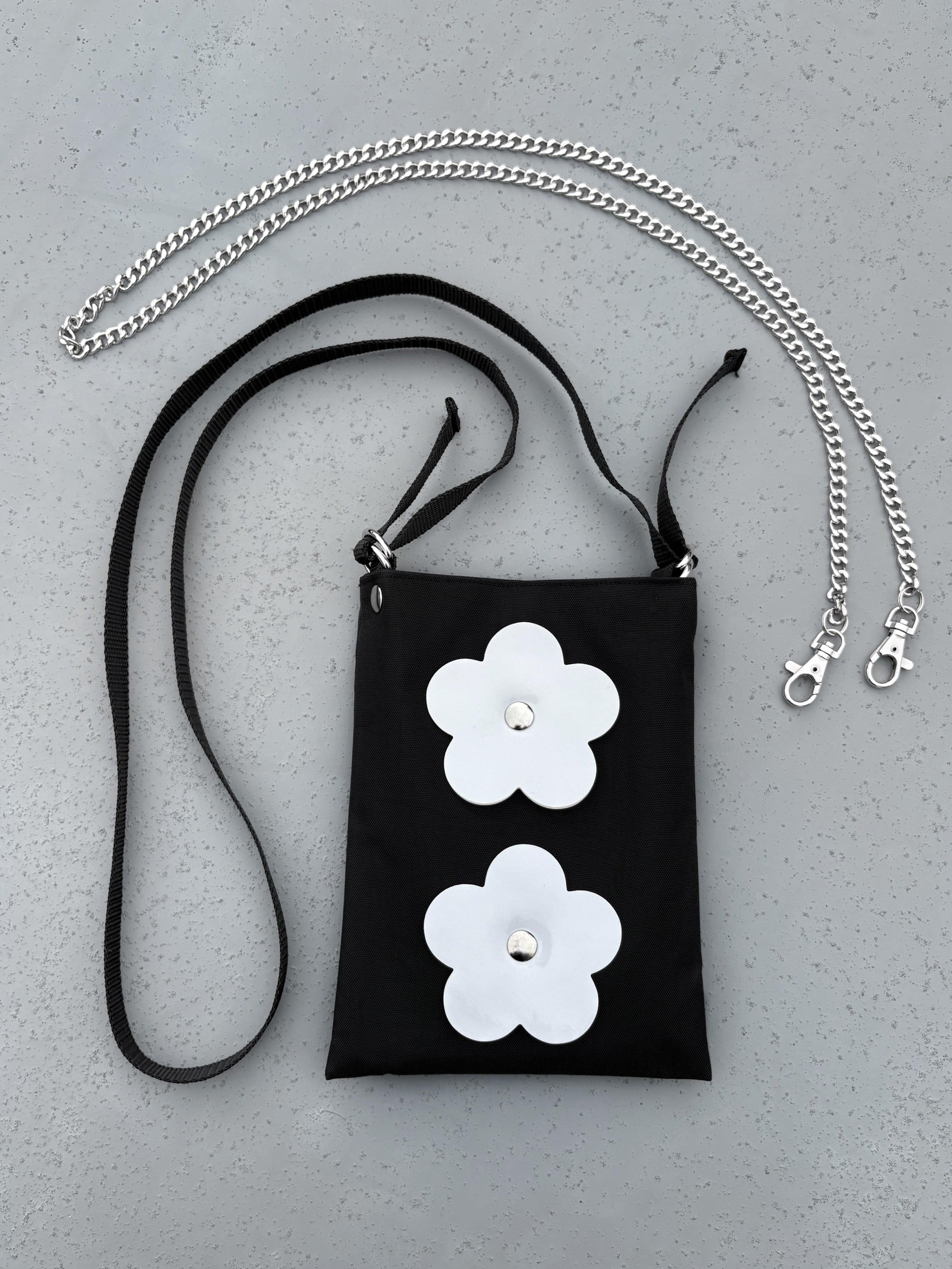 CIRCLE FLOWER MOTIF DECORATION NYLON MOBILE BAG