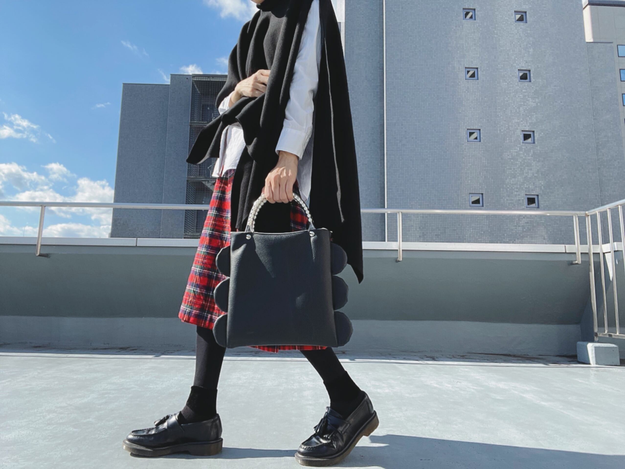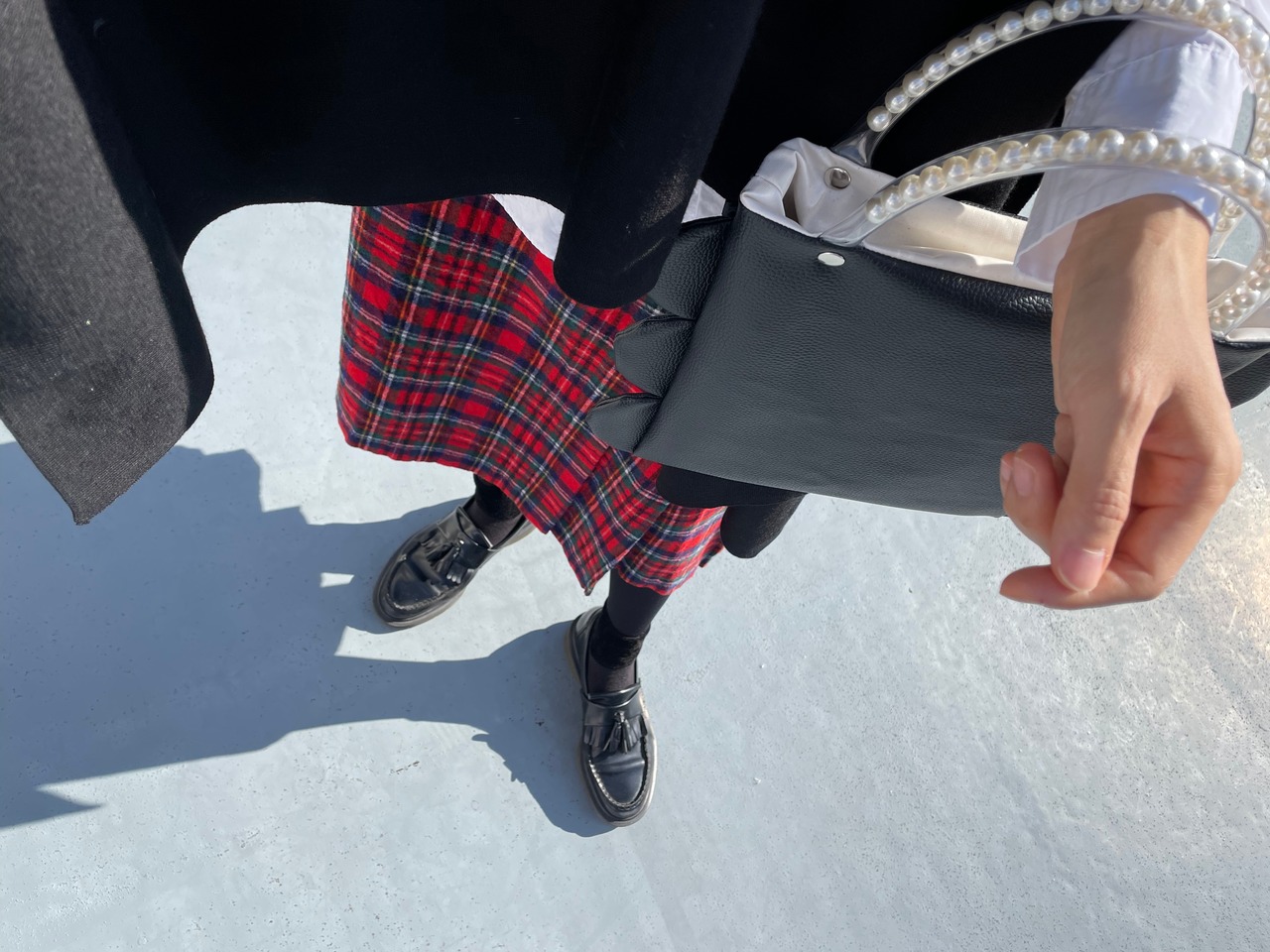 PVCレザー(合皮)パールハンドルスカラップバッグ