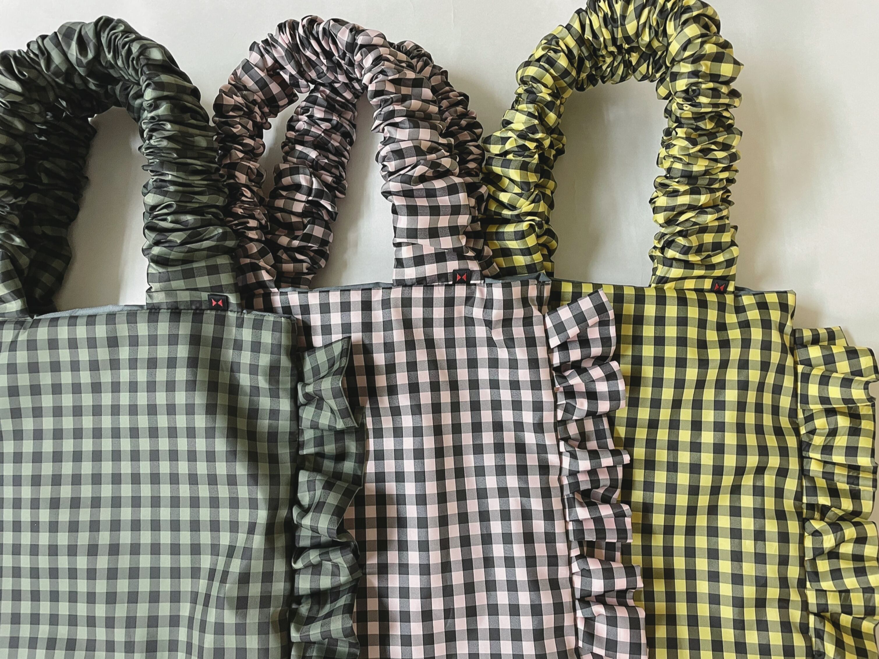 インポートのギンガムナイロン素材を使用