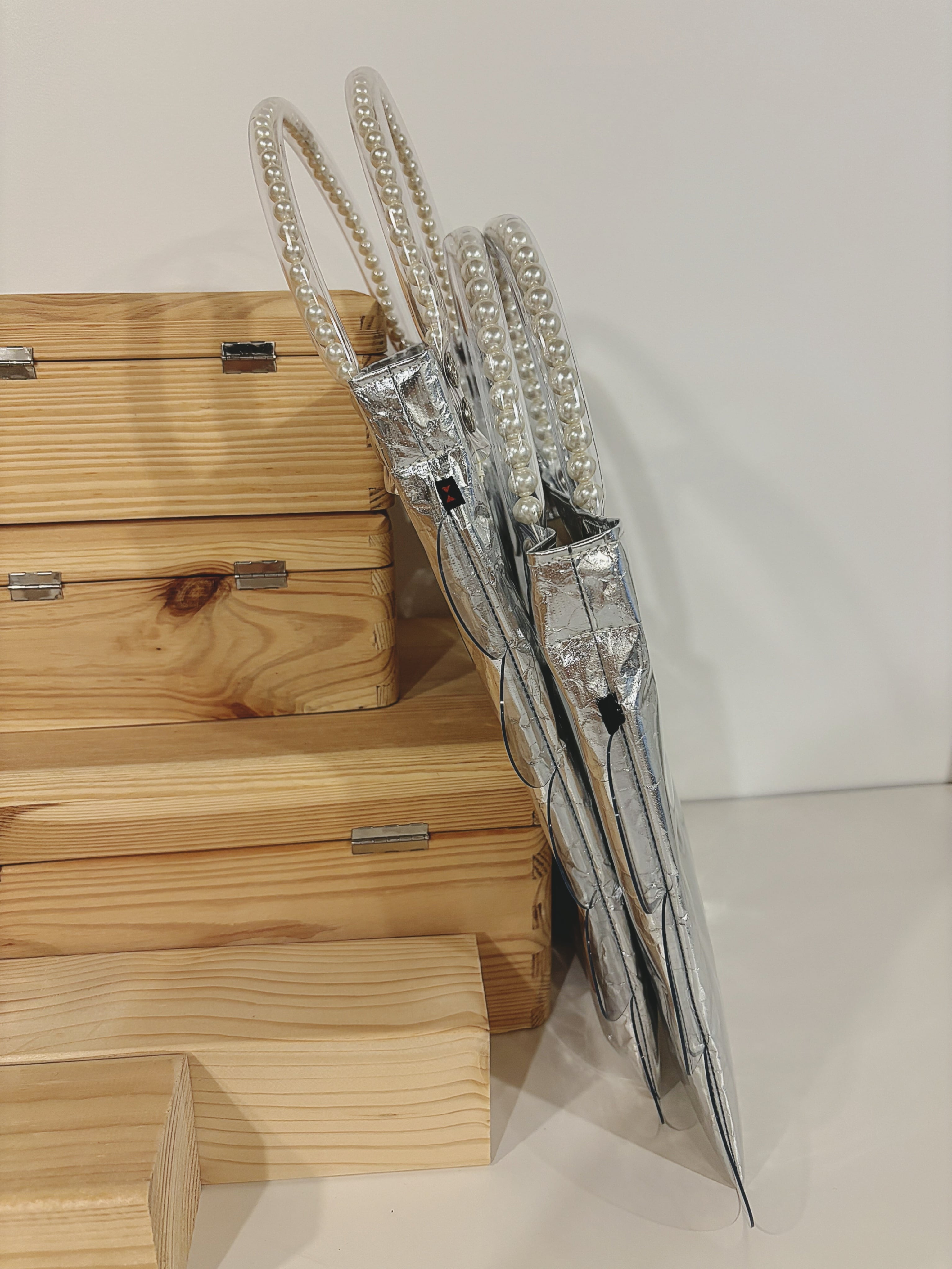 PVC×METALLIC TOUMEI SCALLOP PEARL HANDLE BAG <PEARL L> #233