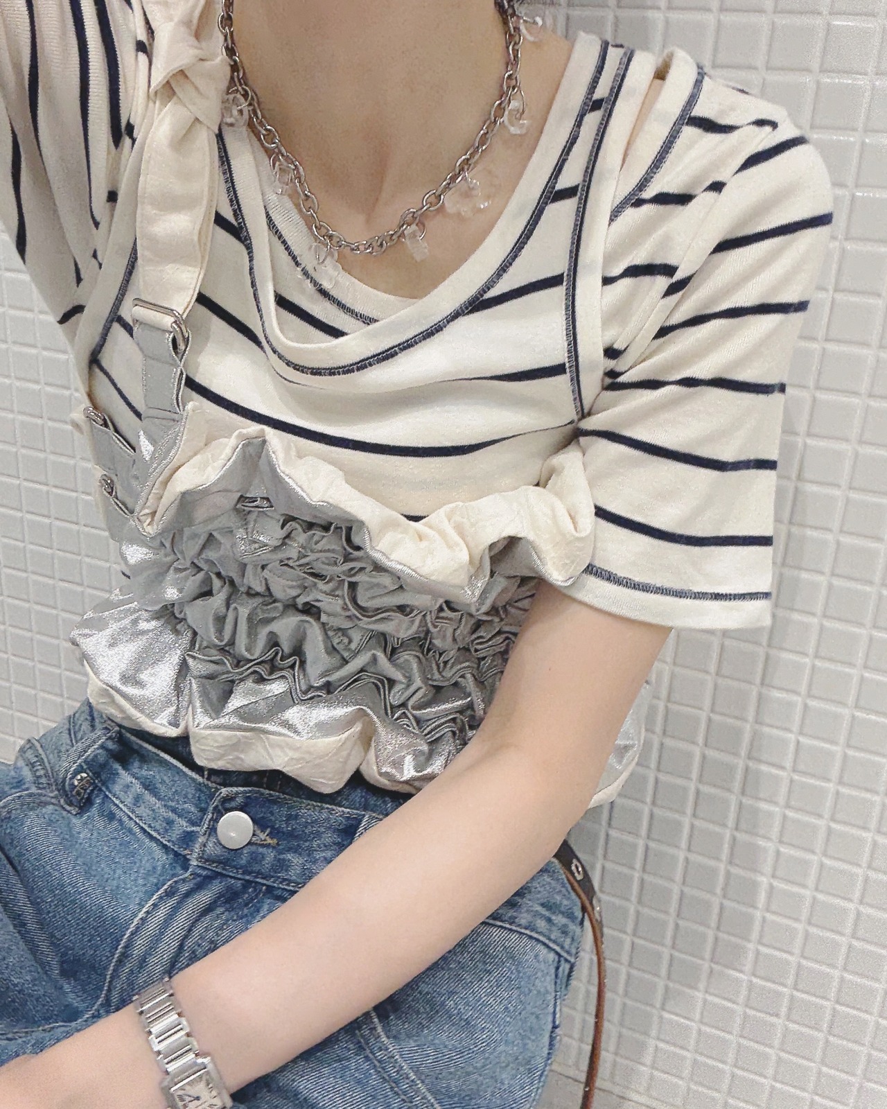 夏の素肌にも嬉しいステンレスチェーンデザイン